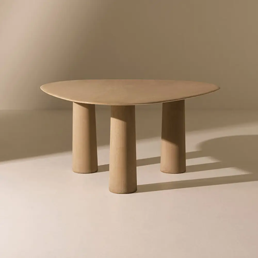 Bold Triangular Dining Table is a testament to expressive design, featuring bold, sculptural forms that reflect the monumental and enduring qualities of ancient structures. The tables’ unique shapes and robust presence infuse any outdoor environment with a sense of grandeur and sophistication, transforming it into a setting of modern elegance.