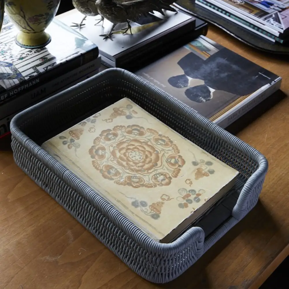 The Dante Letter Tray embodies a minimalist aesthetic while exuding an understated sophistication. It is woven from natural rattan, a material known for its durability and inherent beauty.