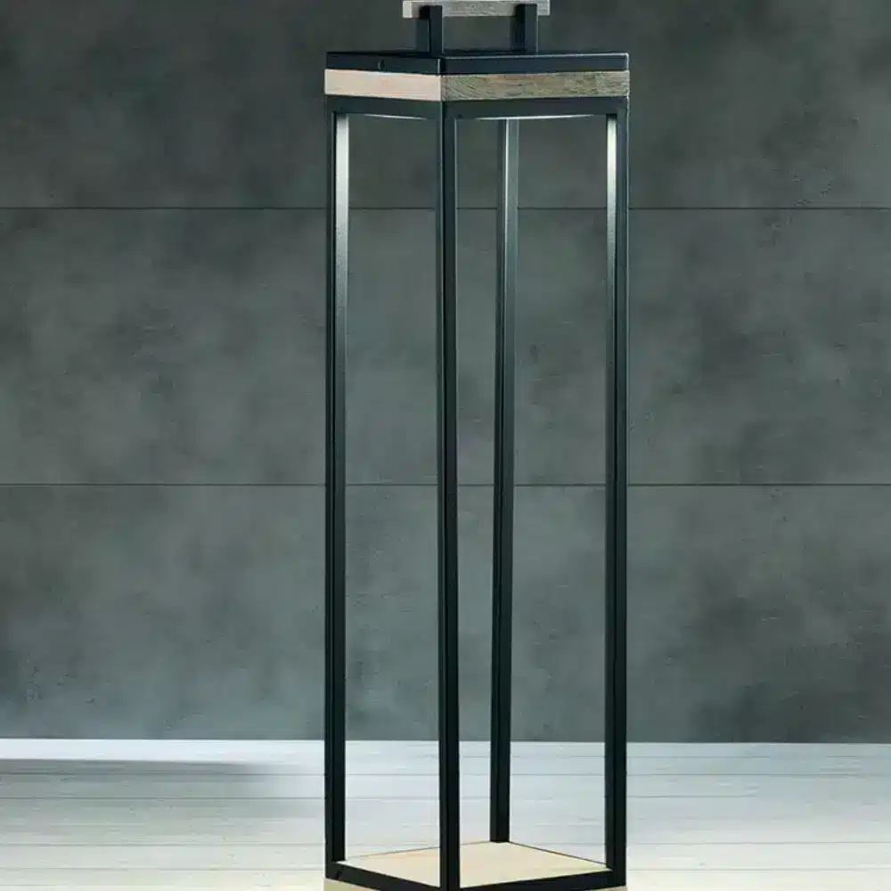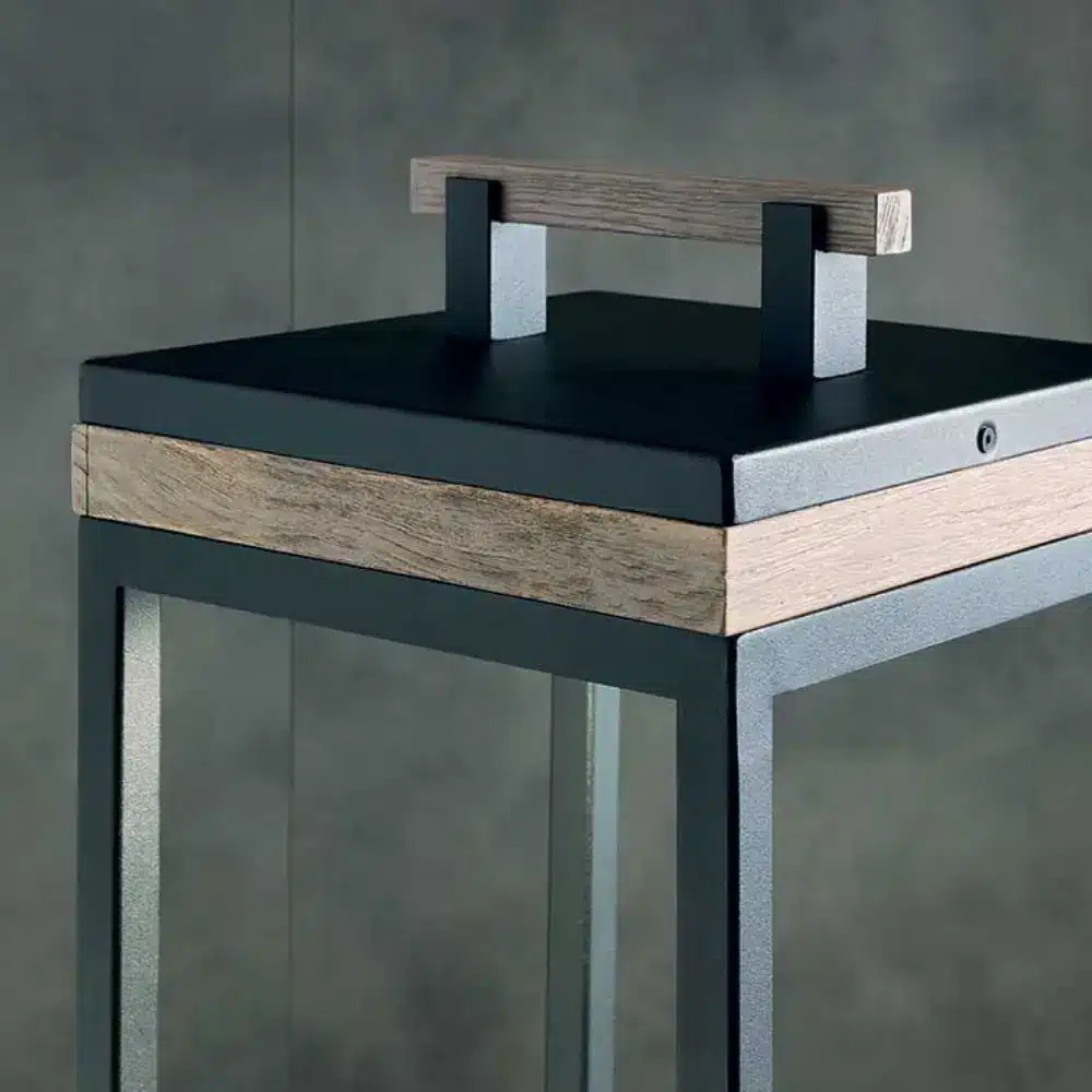 The combination of wood and metal creates a striking contrast that is both visually appealing and functional. This lantern not only serves as a source of light but also as a distinctive piece of decor that enriches any interior with its timeless charm and contemporary flair.