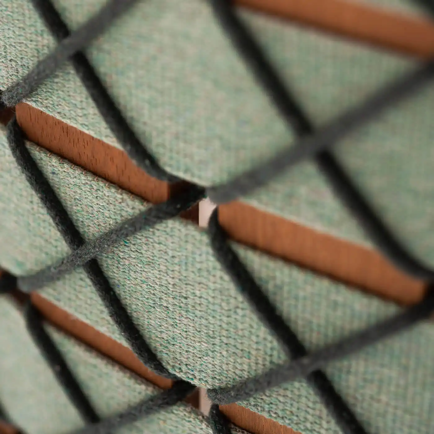 Finish options are broad. The wood comes in a natural finish. The belts and cords are available in a solid color, tone-on-tone, or two contrasting colors pulled from Roda’s full catalogue — grey, sand, brown, tobacco, olive, blue, orange, sky, and through the recycled range: stone, clay, mint, teal, and rose. That is a serious number of combinations, which makes it easy to match an existing outdoor scheme or build something new around it.