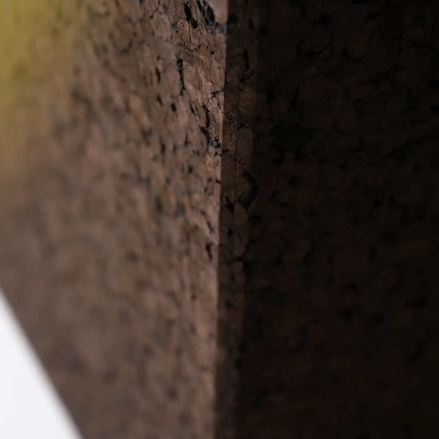 The entire structure is cork. Not cork-wrapped, not cork-finished — cork through and through. The material is composed of natural cork particles bound together by resins derived from the plant itself, then treated with high-temperature steam. No synthetic binders from outside the material. The process is about as honest as furniture gets.