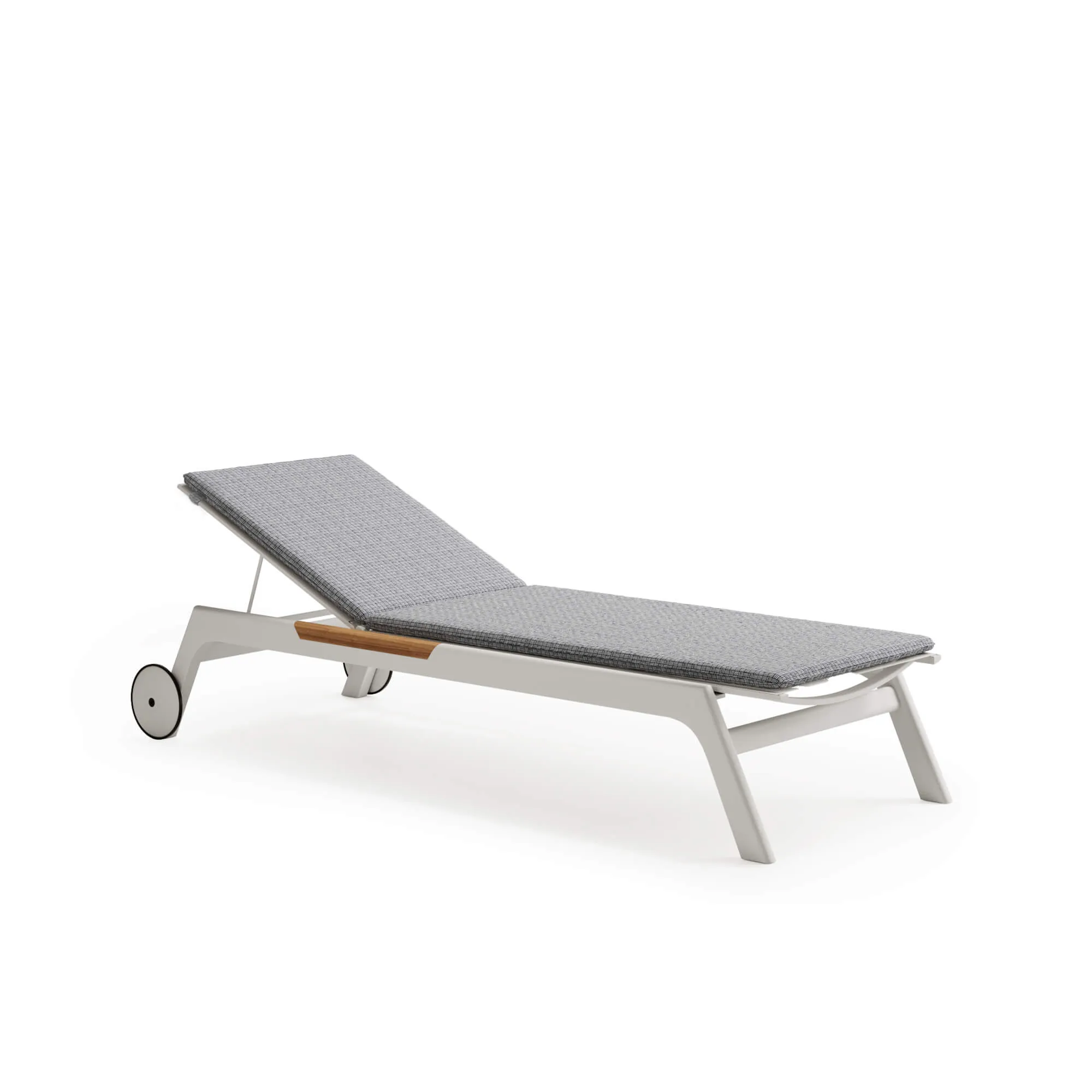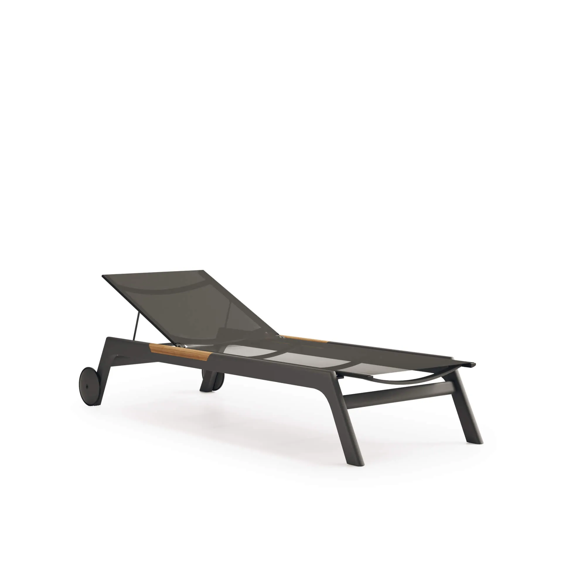 The Nevada Black Chaise Longue is a stunning representation of pure, clean, and timeless design, making it an exceptional choice for outdoor spaces. Available in sleek graphite or classic white aluminum, this chaise longue features elegant teak inserts that enhance its sophistication while providing durability and warmth.