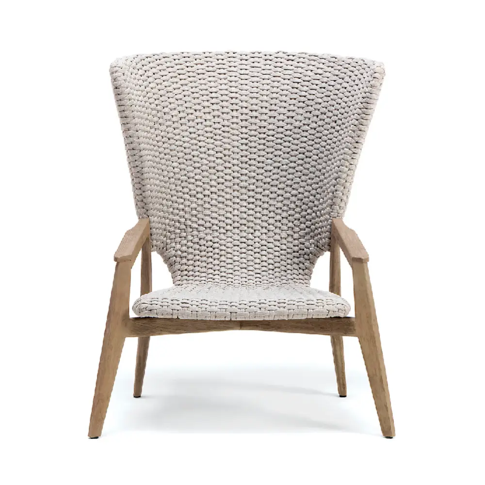 The latest evolution of the Knit High Back Lounge Armchair introduces an exciting new combination of pickled teak and light gray rope. This innovative pairing brings a contemporary edge to the classic Knit design, with the pickled teak’s refined, weathered appearance adding a layer of depth and character.
