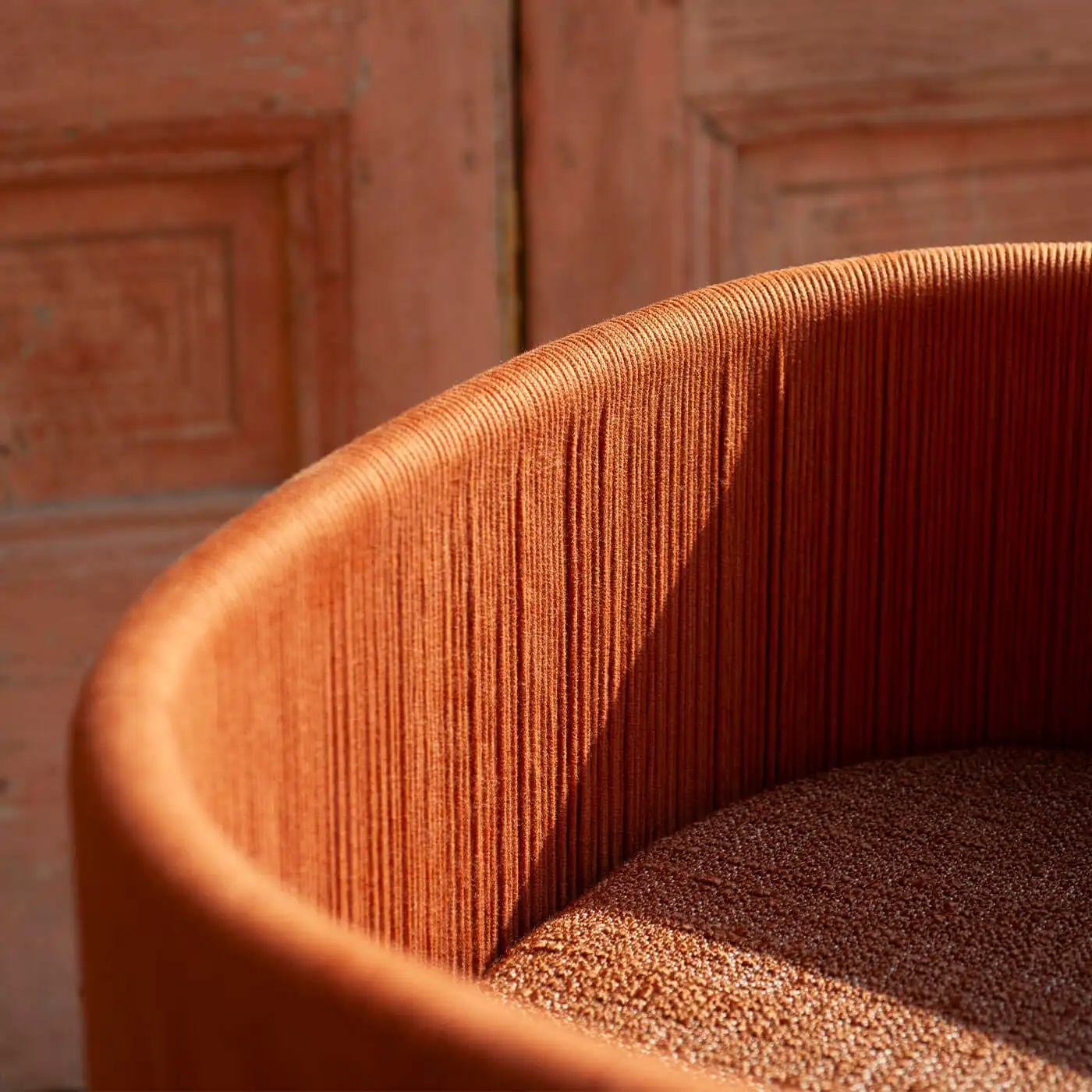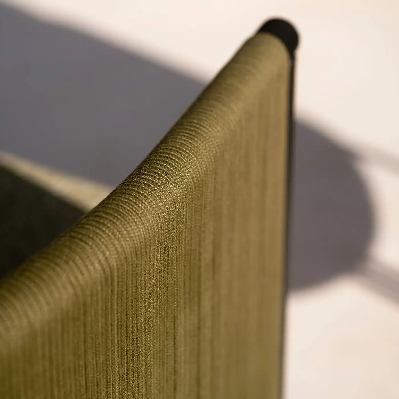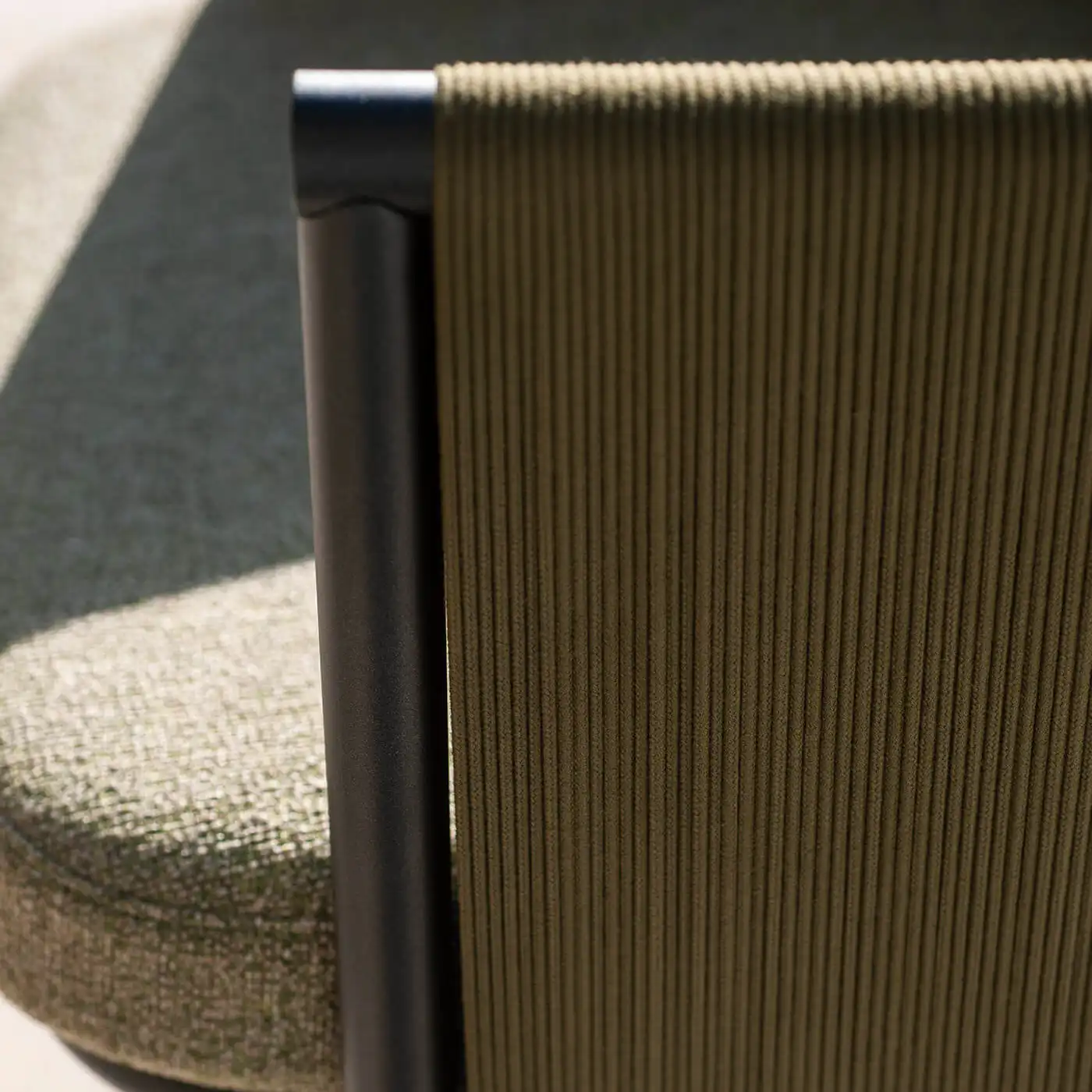 Powder-coated aluminum does not rust. The cord materials — whether standard polyester or recycled — are selected for resilience in outdoor use. But durability here is not just about the materials holding up. It is about the chair maintaining its look over time. The hand-woven backrest stays taut, the frame keeps its finish, and the overall presence of the piece does not diminish with use. That is what makes it a considered investment rather than a seasonal purchase.