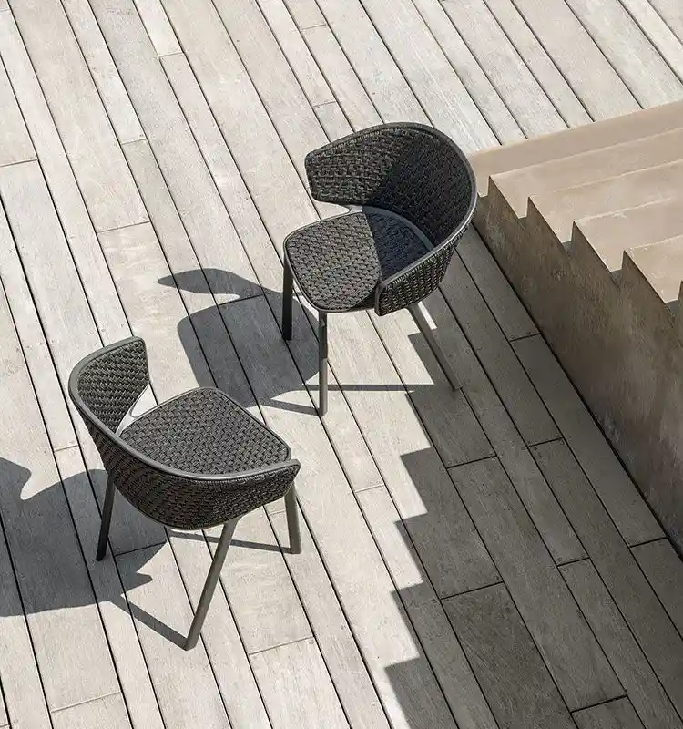 Indoors, Pluvia Dining Armchair surprises with its versatility and refined design. It adapts effortlessly to a range of interiors, making it a standout piece in living rooms, sunrooms, or even office spaces. Its ability to interpret and enhance the mood of its surroundings showcases the careful design thinking behind it.