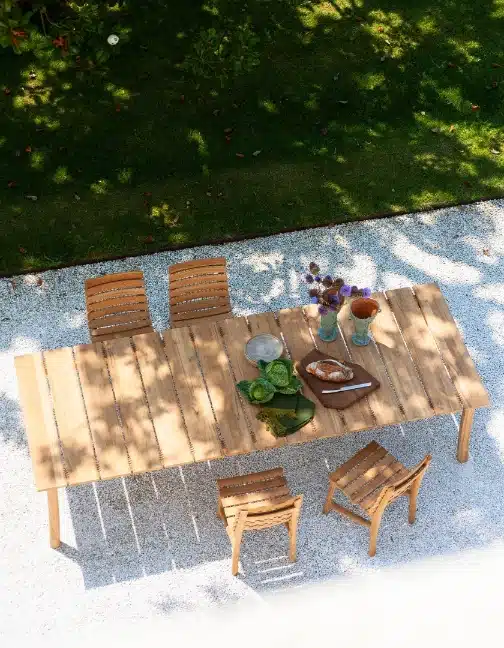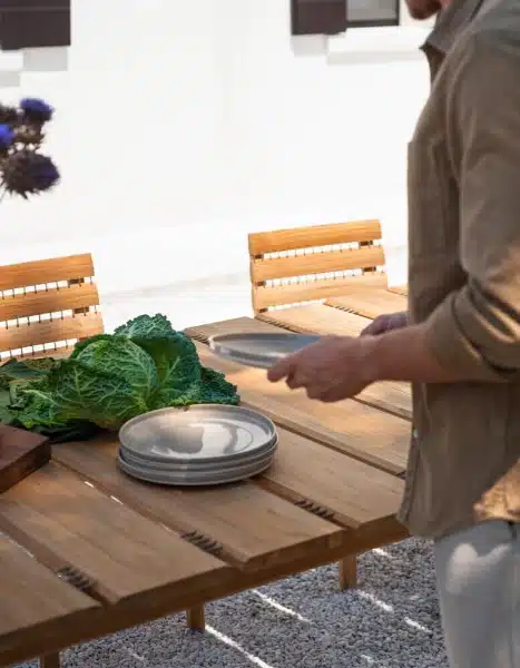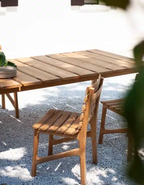 Teak furniture is known for longevity, and the Teseo chair is built to that standard. The material weathers without deteriorating, and the polyester cord is selected for outdoor resilience. There is no finish that needs annual reapplication, no joints that will loosen after a season or two.Roda has kept the construction honest and the material choices straightforward. The result is a chair that earns its place in a space over time, not just on first impression.