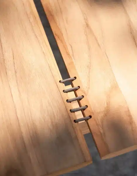The Teseo dining chair has a clear concept at its core: wood that is sewn. Cord stitching runs continuously between teak slats, holding the structure together in a way that feels almost tailored. It is an unusual approach for outdoor furniture, and that is exactly the point. Designed by AMDL CIRCLE for Roda, the chair does not rely on visual excess to make an impression.</p><p>The faceted sides give the silhouette a quiet geometry. Nothing is ornate. But there is real intention in every angle.