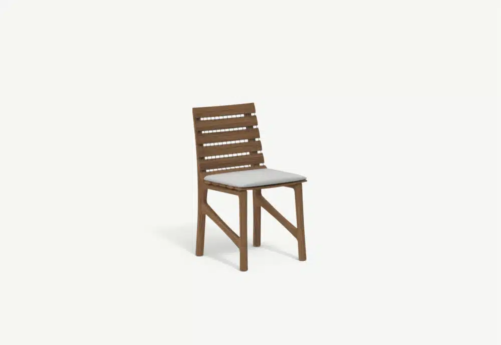 The seat height sits at 17¾ inches, which works well at a standard dining table. With the optional hydro-draining cushion, it rises slightly to just under 19½ inches and adds a layer of comfort without changing the chair’s overall proportion. The cushion is designed to drain quickly after rain, so it stays usable even in unpredictable weather.The seat depth is just over 21 inches. Enough room to sit properly, not so deep that posture suffers at a dining table.