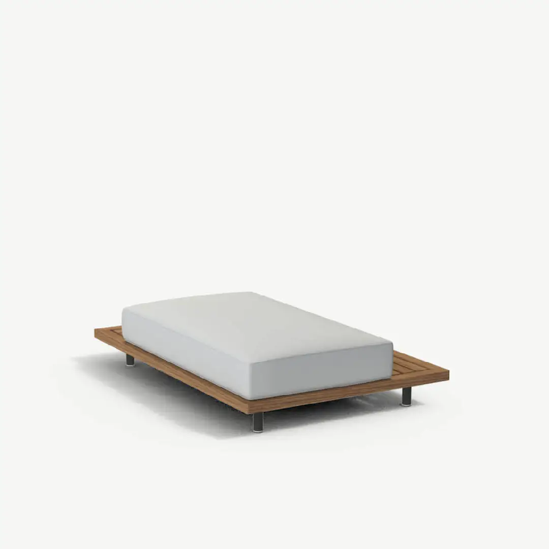Roda built Philia around materials that age rather than deteriorate. Teak develops a silver-grey patina over time if left untreated — some prefer it, some oil it back. Either way, the structure doesn’t weaken. Batyline resists fading and maintains tension through seasonal changes. And because the cushions drain and the frame breathes, there’s no trapped moisture working against the piece over time. It’s built to stay in use, not to be stored away at the first sign of weather.