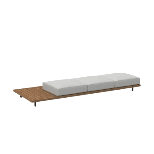 Teak ages well. Batyline holds up. The hydro-draining cushions are designed so that a rain shower doesn’t end the day. These are materials that were chosen with longevity in mind, not just for the way they look at launch. Philia is the kind of outdoor system that looks right after a few seasons — maybe better.