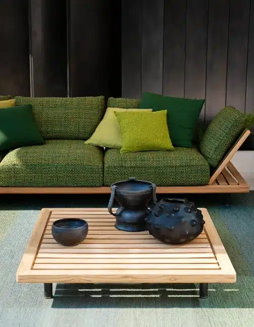 The Philia coffee table is built around a carabottino frame — the wooden grating traditionally found on yacht decks. It’s a detail that gives the piece an immediate sense of purpose. The structure isn’t decorative. It defines the whole object. And it connects directly to the broader Philia system, where the same logic runs from the coffee table through to the seating and double chaise longue.Designed by Rodolfo Dordoni, the proportions are deliberate. At 45 1/4\” square and just under 8\” high, it sits low and grounded. Nothing about it feels accidental.