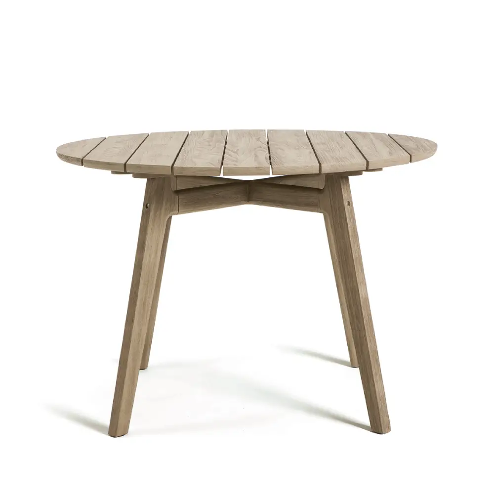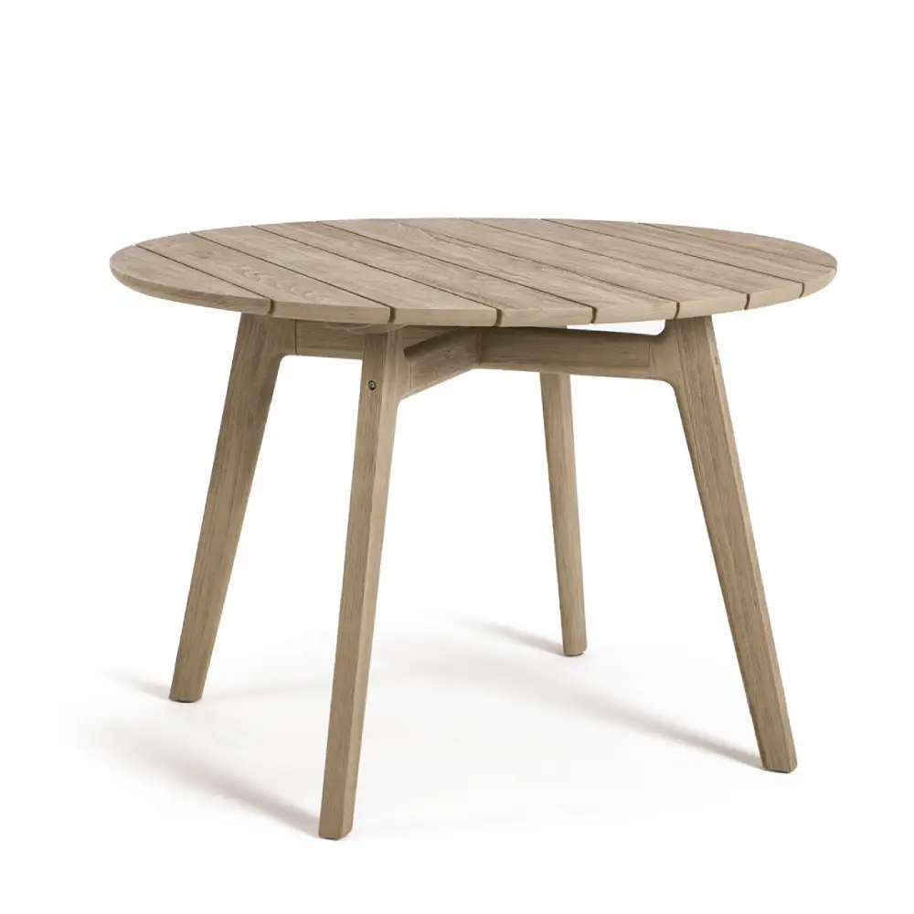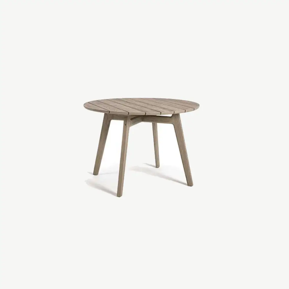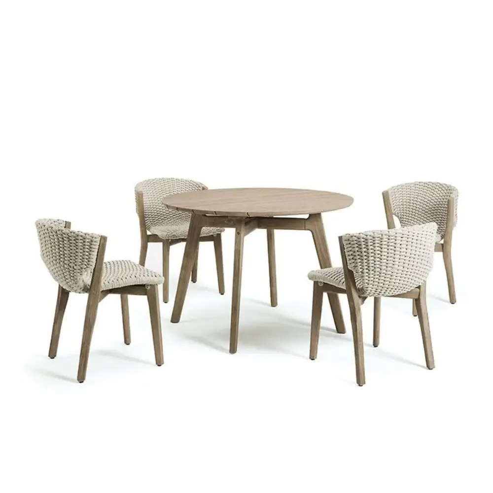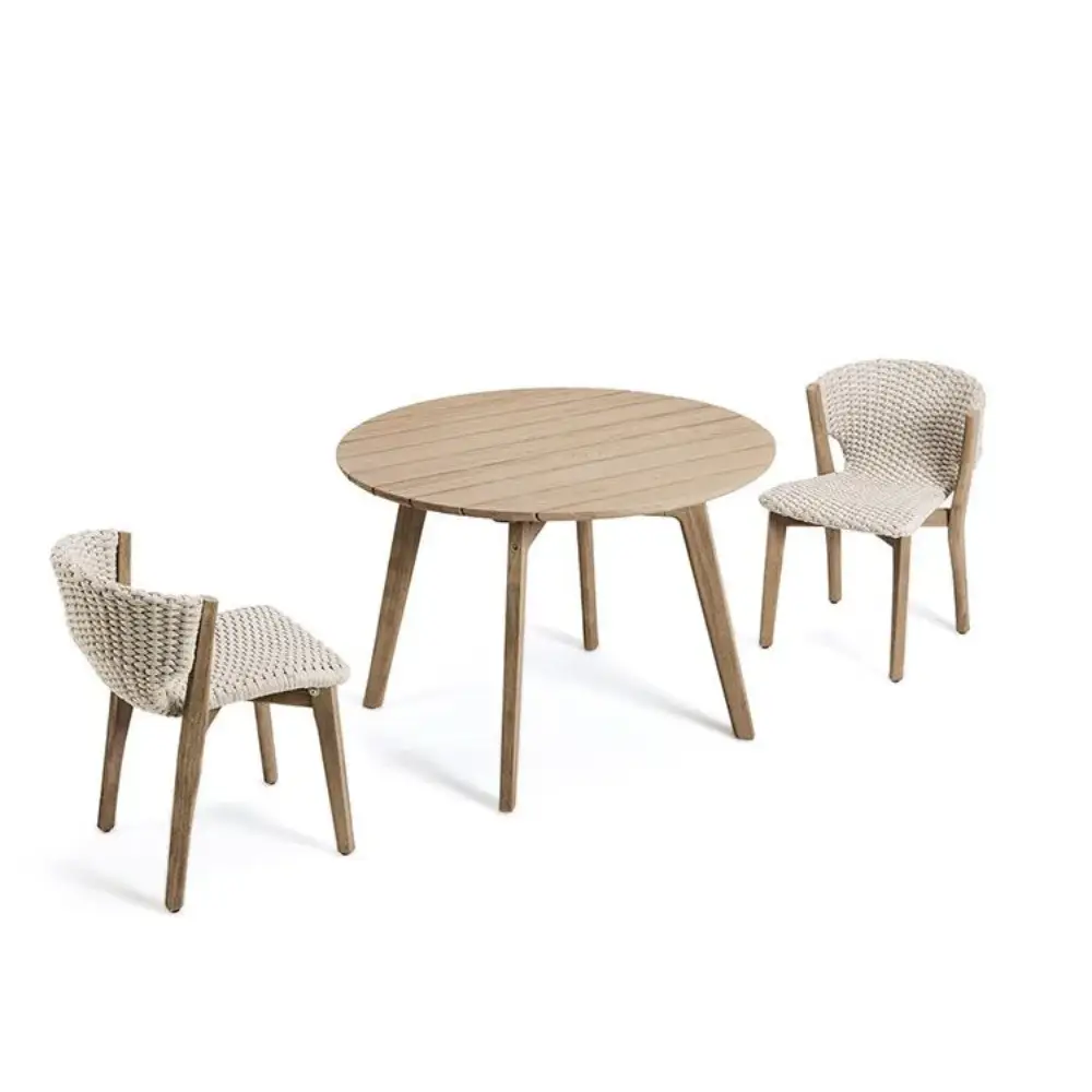 At the heart of the Knit Round Table lies a sophisticated interplay of premium teak and artfully woven rope. The teak, with its rich, natural grain, provides a sturdy and visually pleasing foundation, while the woven rope introduces an element of intricate texture and artistry.